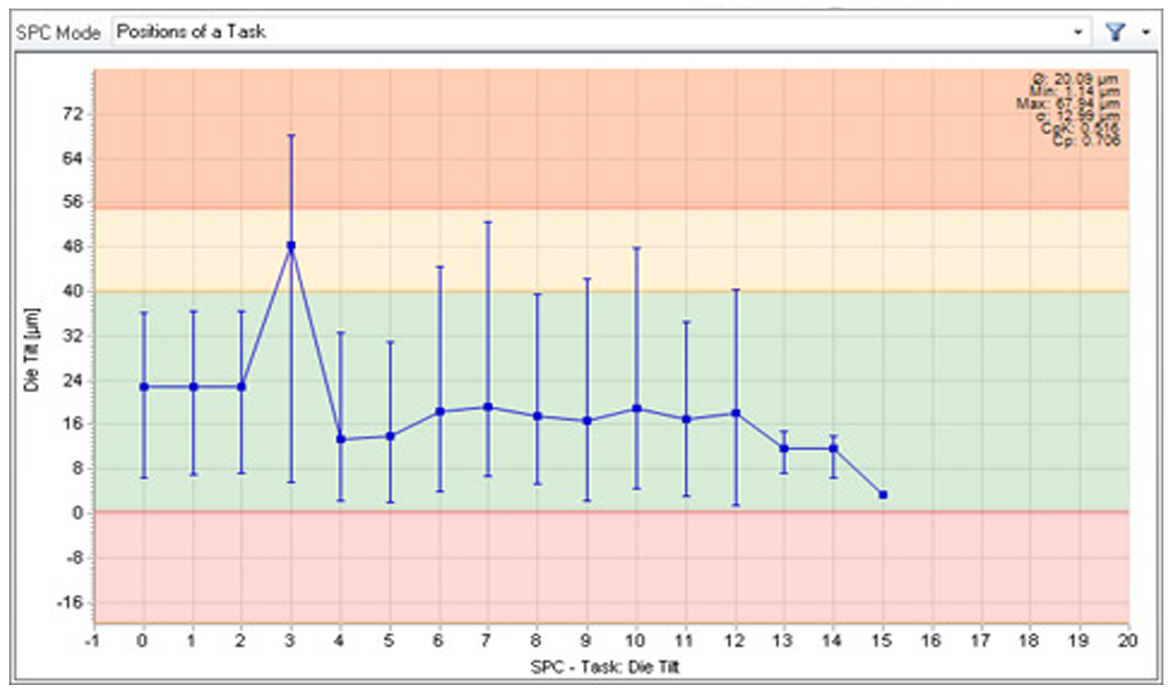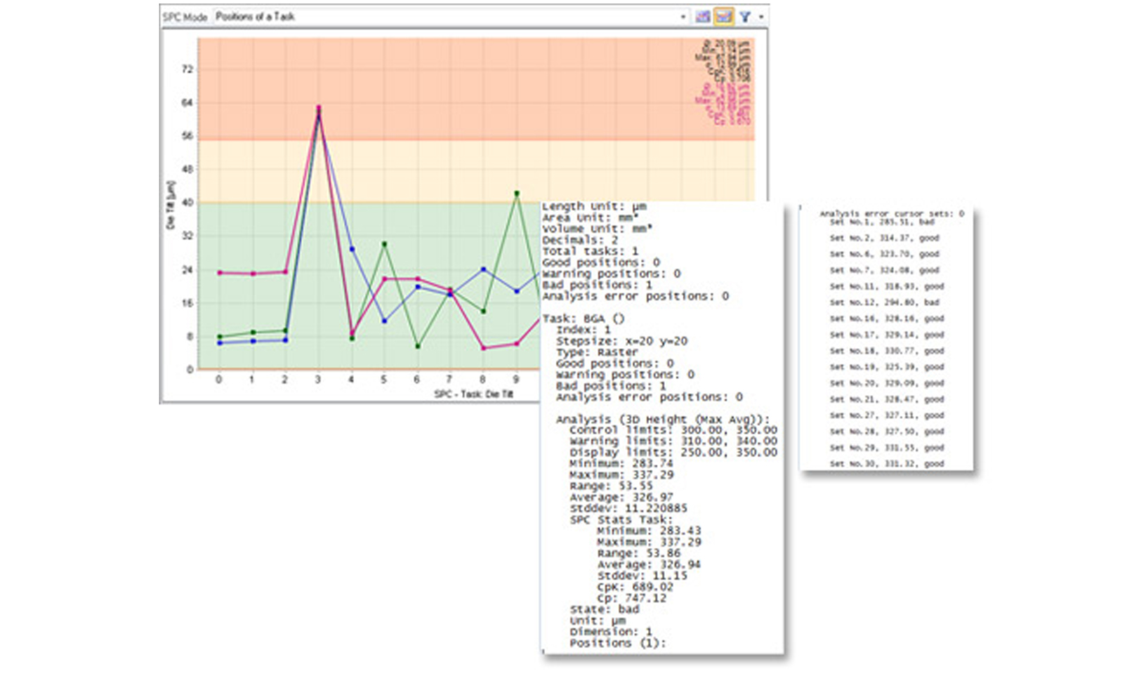 - Built-in SPC charts with report function (x bar / rank, position-specific)
